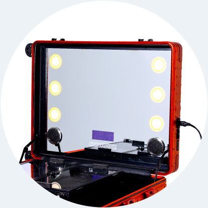 海外メイクアップアーティストの間で人気を博しているキャリーケース型ドレッサーを、今回初めて日本仕様に開発しました。高級感のあるアルミボディで、スキンケア用品・メイクアップ用品・ヘアケアアイテムなど、いつもお使いのラインナップをすべて、手軽に現場へ持ち運びができ、あなたのプロフェッショナルな仕事を支えます。